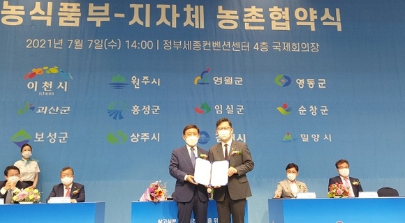 이날 협약식에는 농림부의 농촌협약 시범사업에 선정된 김해시 등 12개 지자체 단체장이 참석했다.