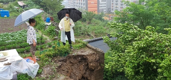 이 지역은 지난 5일부터 216mm의 강수로 임야가 일부 유실되어 동행정복지센터에서 응급조치하고 안전시설을 설치했다.