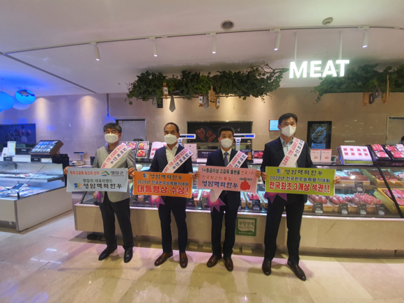 행사가 추진되는 지난 6일, 영암군 박종오 축산과장을 비롯한 매력한우브랜드경영체인 영암낭주농협 김봉진 전무 및 매력한우법인 관계자 등이 할인행사를 격려하기 위해 롯데백화점 평촌점 행사장을 방문했다.