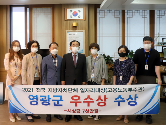 영광군은 지난 6일 고용노동부에서 실시한 ‘2021 전국 지방자치단체 지역일자리 대상’의 일자리공시제 부문에서 우수상과 함께 시상금 7천만 원을 받았다고 밝혔다.