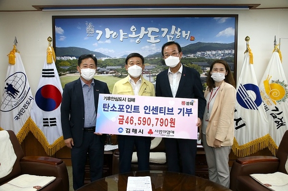 경남 김해시는 탄소포인트제 기부참여자의 인센티브 4659만원을 경남사회복지공동모금회에 기탁했다고 8일 밝혔다.