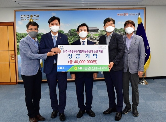 NH농협은행 진주시지부는 9일 오전 진주시 충무공동 다함께돌봄센터의 안정적 운영을 지원하기 위해 진주YMCA에 4천만원을 기탁했다.