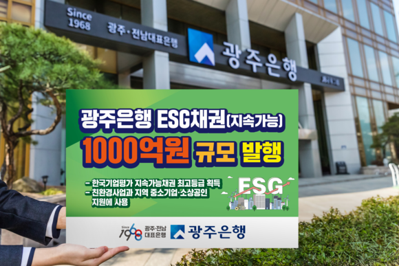 광주은행(은행장 송종욱)은 ESG 인증등급에서 최고등급을 받은 1천억원 규모의 원화 ESG채권을 발행했다고 밝혔다.