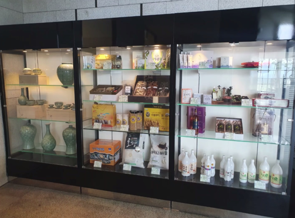 12일 강진군에 따르면 전시장은 골프장 1층 로비 내부에 있으며, 유기농쌀, 쌀귀리, 잡곡 등 농산물과 목이버섯, 쌀귀리 분말, 스무디밀, 작두콩차 등 가공식품 및 차류, 그리고 토하젓, 매생이, 전복 등 수산물과 강진착한한우까지 약 25개의 강진군을 대표하는 농수축특산물이 전시·판매되고 있다.