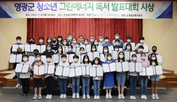 한빛원자력본부(본부장 이승철, 이하 한빛본부)가 지난 8일 한빛원자력본부 홍보관 강당에서 ‘영광군 청소년 그린에너지 독서 발표대회 시상식’을 개최했다.