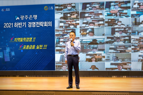 광주은행(은행장 송종욱)은 16일 본점에서 2021년 하반기 경영전략회의를 개최하며 한층 강화된 지역밀착경영과 포용금융 실천 의지를 다졌다.