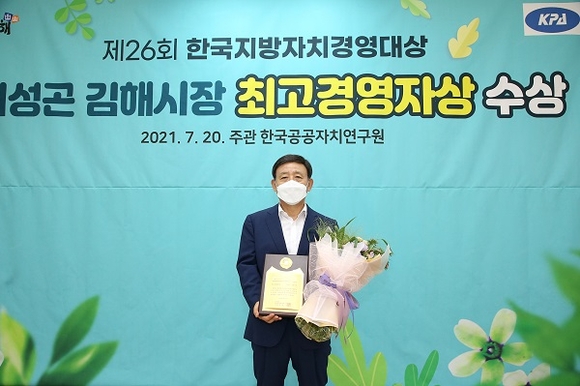 경남 김해시는 허성곤 시장이 올해 제26회 한국지방자치경영대상에서 '최고경영자상'을 수상했다고 20일 밝혔다.