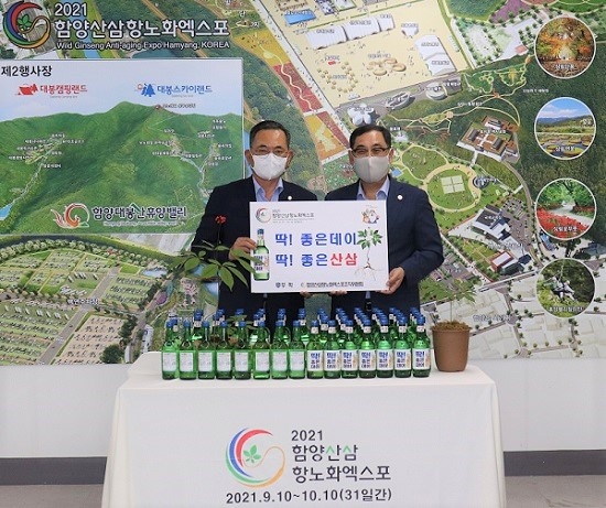 함양산삼항노화엑스포조직위원회는 20일 ㈜무학과 '2021 함양산삼항노화엑스포'의 성공적 개최를 위한 업무협약을 체결했다.