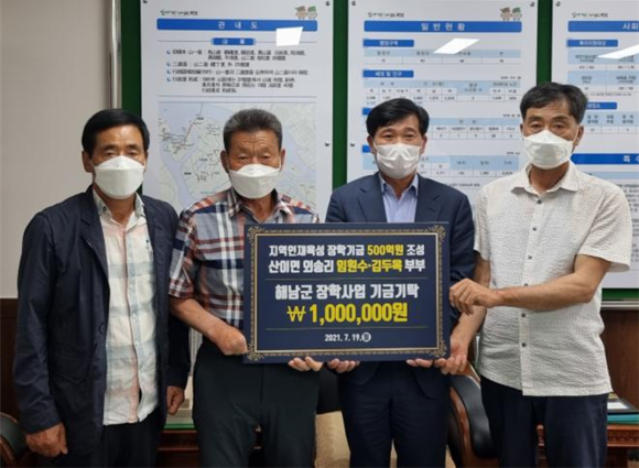 평소에도 주변의 어려운 이웃에 많은 관심을 갖고 모범적으로 생활해 온 부부는 최근 해남군의 장학사업기금 500억원 조성 소식을 듣고 기부를 결심하게 됐다.