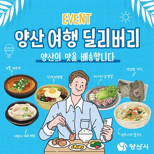 경남 양산시는 '양산 여행 타입 테스트' 참여 이벤트를 시작으로 양산의 대표 음식을 집에서 안전하게 즐길 수 있는 '양산여행 딜리버리-양산의 맛을 배송합니다'를 진행한다고 22일 밝혔다.
