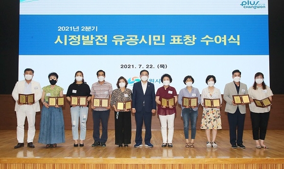 경남 창원시는 22일 오후 시민홀에서 2021년도 2분기 시정발전 유공시민 표창 수여식을 가졌다.