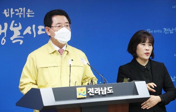 김영록 전라남도지사 24일 전국적인 코로나19 4차 대유행이 진행되고 있는 가운데 델타 변이 바이러스가 무서운 속도로 지역 사회에 확산 되고 있어, “도민 모두 개인 방역 수칙을 철저히 준수할 것”을 당부했다.