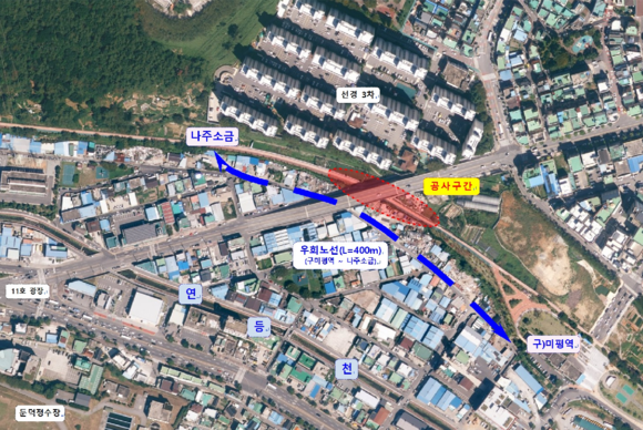 26일 순천시에 따르면 공사중 안전사고 예방과 신속한 공사추진을 위해 구)미평역에서 나주소금까지 400m 구간을 8월 2일부터 11월 16일까지 통제할 계획이다.