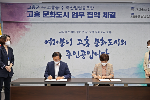 고흥군(군수 송귀근)이 26일 고흥 문화도시 조성을 위하여 11개 지역 농ㆍ수ㆍ축ㆍ임협과 업무협약을 통해 민관 협력체계 구축에 나섰다.