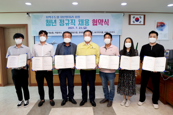 무안군(군수 김산)은 지난 23일 군수실에서 지역 청년들에게 양질의 일자리를 제공하고 청년의 행복한 내일을 지원하기 위해 지역 기업들과 청년 정규직 채용 협약식을 가졌다고 밝혔다.