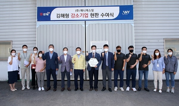 경남 김해시가 2019년부터 매년 기술경쟁력과 성장 가능성이 높은 중소기업을 발굴해 김해형 강소기업으로 육성하고 있는 가운데 26일부터 올해 새로이 선정된 20개 기업(3기)에 현판을 전달하고 글로벌 기업으로의 육성에 본격 나섰다.