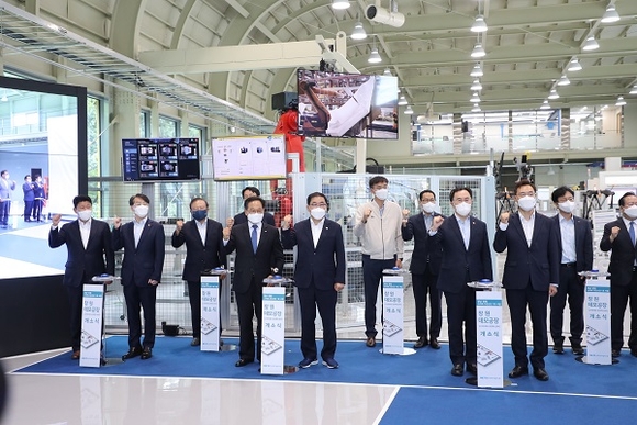 '창원산단 스마트제조 공정혁신센터(데모공장)'은 스마트그린산단 조성을 위한 1호 사업인 '표준제조혁신 공정모듈 구축사업'의 일환으로 총사업비 450억원을 들여 지난 2019년 10월 시작해 1년 9개월만에 창원농업기술센터 부지에 개소하게 됐다.