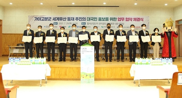 경남도는 가야고분군 세계유산 등재 추진 관련 김해시 등 9개 지자체 및 가야고분군세계유산등재추진단과 함께 29일 함안 칠서산업단지관리공단 대강당에서 부산경남우유협동조합과 업무협약을 체결했다.