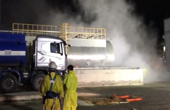 A케미칼은 사업장 내 염산 저장탱크(100톤) 하부 플랜지 연결 볼트를 부실하게 관리해 지난 16일 밤 11시 48분경 약 5.5톤의 염산이 저장탱크 방류벽과 공장 내부로 누출되는 사고를 발생시켰다.