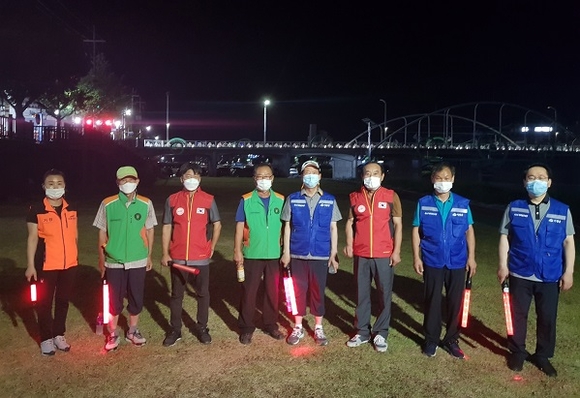 군은 31일 주말 저녁에는 거창읍 여성소방대(대장 이도희), 자유총연맹(회장 양호진), 자율방재단(단장 이현우) 3개 단체가 구인모 군수와 함께 행정명령에 따른 음주·취사 금지와 마스크 착용 의무화에 대해 계도활동을 함께 실시했다.