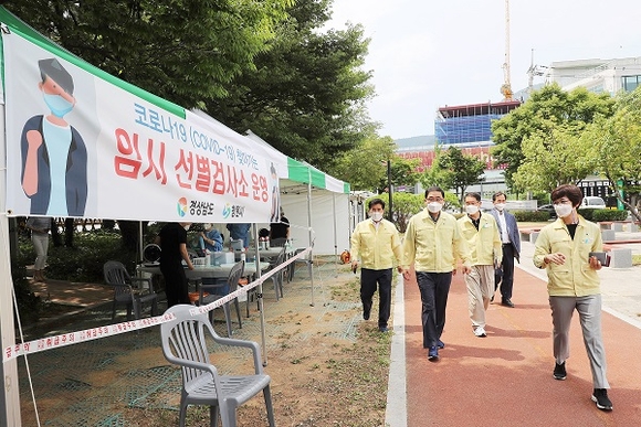 지난 30일에는 마산봉암공단에 설치된 찾아가는 이동 임시 선별검사소를 방문해 이주노동자를 대상으로 선제적인 검사를 받을 수 있도록 주문했다. 31일에는 마산역 임시선별검사소, 8월 1일에는 창원스포츠파크·팔용동 미관광장 임시선별검사소를 직접 방문해 검체채취가 원활하게 이뤄지고 있는지 등을 살폈다. 연일 이어지는 폭염 속에 근무 의료진과 검사 대기자를 위한 그늘막 등 폭염 대책이 마련돼 있는지도 점검했다.