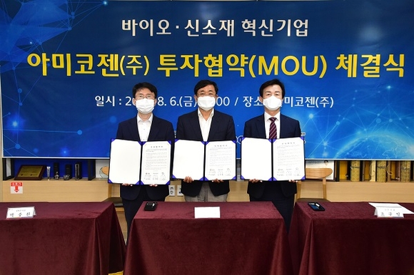 경남도와 진주시, 아미코젠㈜은 6일 오전 진주시 문산읍에 위치한 아미코젠 문산공장에서 도내 바이오산업 활성화를 위한 380억 원 규모의 신설 투자와 165개의 일자리 창출에 관한 투자협약을 체결했다.