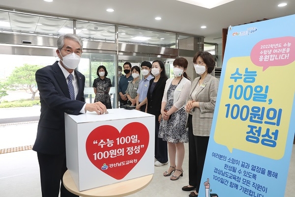 경남도교육청이 2022학년도 대학수학능력시험 D-100일을 맞아 '수능 100일, 100원의 정성' 모금활동을 10일부터 진행한다.