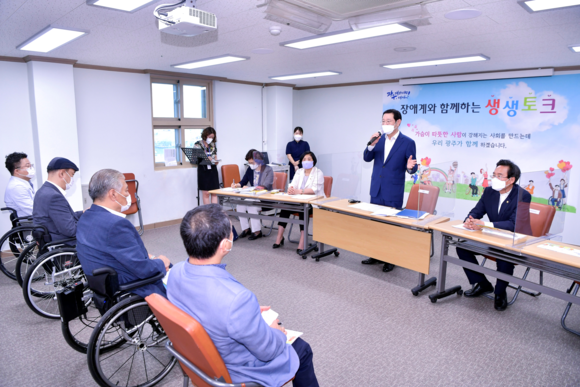 이용섭 광주광역시장은 17일 서구장애인복지관을 찾아 20여 개의 장애 관련 기관·단체·시설 관계자들이 참석한 가운데 ‘생생토크’를 열고 현장과 소통하는 시간을 가졌다.