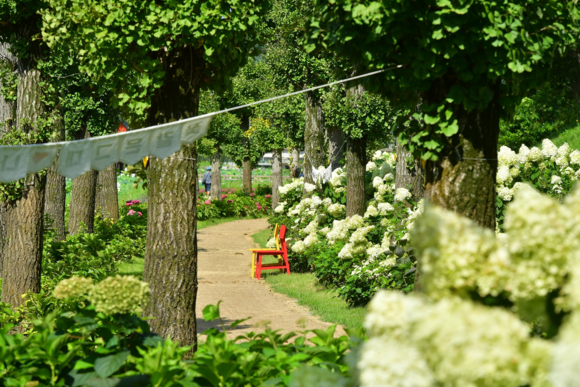 다른 정원들은 다음달부터 본격적인 조성을 시작하지만, 은행나무 수국길은 지금 거닐어도 아름답다. 새하얗게 피어난 목수국과 은행나무가 조화를 이룬 풍경이 색다른 감동을 안긴다.