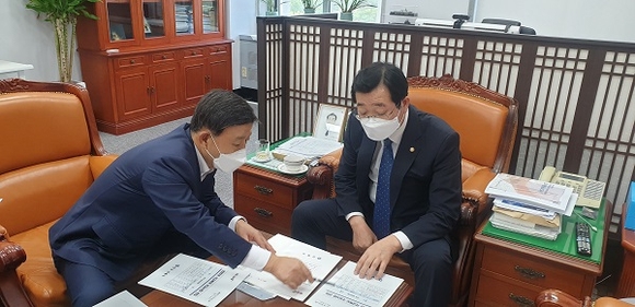 특히 시의 주요현안 사업인 △관내 양돈농가의 가축분뇨 처리 어려움과 액비 살포로 인한 악취 민원을 조속히 해소하기 위한 '가축분뇨공공처리시설 현대화 사업(130억원)' △국내 최대 규모 하천형 배수습지로서 멸종위기 생물 13종을 비롯한 다양한 생명체가 서식하고 있는 화포천습지 육역화 방지를 위한 '화포천 습지보호지역 내 사유지 매수(200억원)'을 비롯해 △`24년 전국체전 개최 전 주촌~삼계 구간 조기 개통을 위한 '국도58호선 무계~삼계 도로 건설 사업비(336억원)' △추진 중인 국립가야역사문화센터와 연계한 '디지털 가야역사 유적공원 조성(62억원)'과 △올해 말 1단계 완공예정이나 부족한 편의시설 보완으로 동남권 대표 산림휴양시설로 발돋움하기 위한 '국립 용지봉 자연휴양림 조성사업(100억원)' 등 주요사업 추진 필요성을 하나하나 설명하고 공감대를 형성했다.