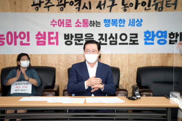 이용섭 광주광역시장은 19일 청각·언어장애인 쉼터인 ‘농아인 쉼터’와 광주시 장애인종합지원센터 등을 방문해 현장 의견을 청취했다.