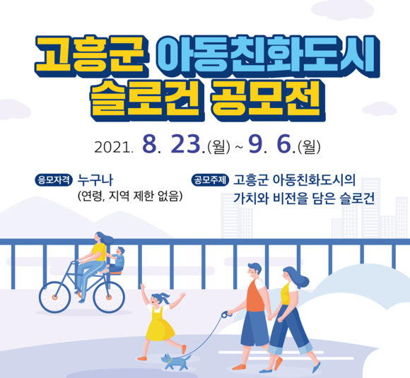 20일 고흥군에 따르면 아동친화도시 슬로건은 23일부터 다음달 6일까지 접수받으며, 고흥군만의 차별화된 아동친화도시 조성 방향과 비전을 함축적으로 내포할 수 있는 슬로건을 선정하여 고흥군 아동친화도시 홍보에 활용할 예정이다.