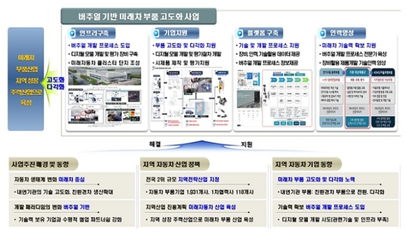 미래자동차로 빠르게 전환되면서 대부분의 개발환경이 디지털 환경으로 대체됨에 따라 부품기업들에게도 버추얼 개발 프로세스의 도입이 절실하게 되어 지역 부품기업들이 빠르게 개발 프로세스를 도입운영할 수 있도록 애로기술 지원과 역량강화 지원을 포함해 운영된다.