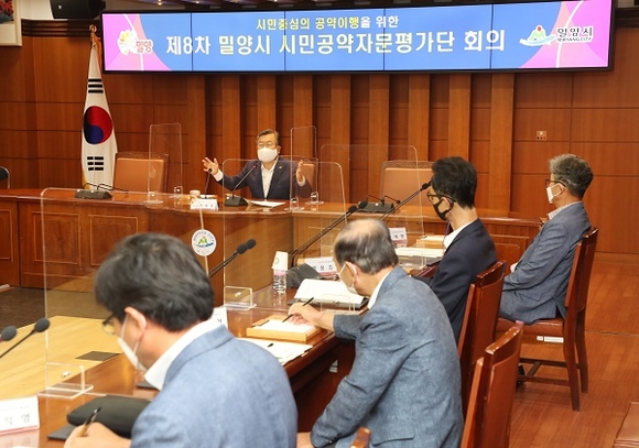 경남 밀양시는 지난 20일 새롭게 구성된 밀양시 시민공약자문평가단과 국·소장 등이 참석한 가운데 제8차 시민공약자문평가단 회의를 개최했다.