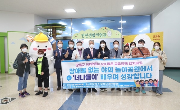 강득구 의원은 “전국 최초로 설립된 경상남도교육청 특수교육원을 방문해 장애학생을 위한 야외체험공간인 '너나들이 체험공원'을 직접 돌아볼 수 있는 기회를 주셔서 감사하다. 장애인의 삶의 질을 향상시키기 위해 특수교육과 장애인 정책 발전을 위해 더욱 노력하겠다”고 말했다.