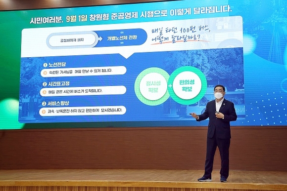 시는 허 시장의 굳건한 의지 아래 896일간 치열한 준비 과정을 거쳤다. 우선 2019년 3월 준공영제 추진위원회를 구성해 준공영제 시행 논의를 시작했고, 지난해 1월에는 통합산정제(전체 노선을 통합하여 운행적자를 보전하는 제도)를 시행해 재정지원의 합리성을 높였다. 그러나 통합산정제에 대한 업체들의 반발로 갈등이 최고조에 달했고, 그해 7월 시내버스 파업 사태를 맞았다.