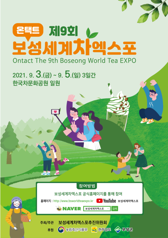 대한민국 녹차수도 보성군은 오는 3일부터 5일까지 제9회 보성세계차엑스포를‘세계속에 그린(Green) 보성차, 미래 천년을 열다’라는 주제로 한국차문화공원 일원에서 온택트로 개최한다.