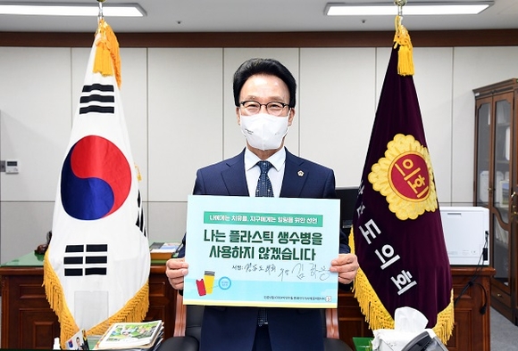 경남도의회 김하용 의장은 1일 플라스틱 생수병 사용을 줄이자는 'NO 플라스틱 캠페인'에 동참했다.