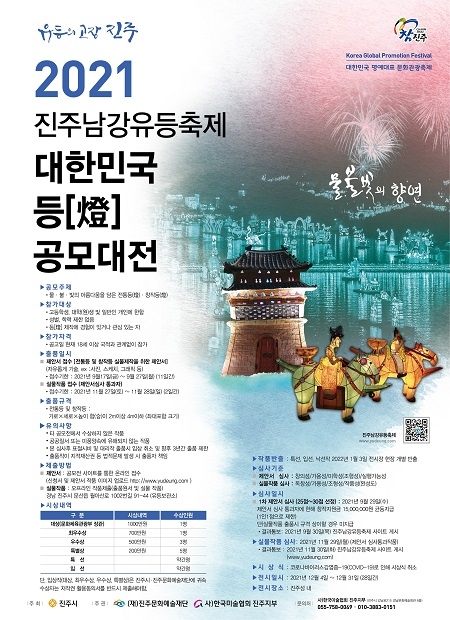 진주남강유등축제 대한민국 등 공모대전은 진주시가 주최하고 진주문화예술재단과 한국미술협회 진주지부가 공동 주관하는 행사로 지난 2013년부터 시작해 등의 아름다운 조형미를 뽐내왔다.