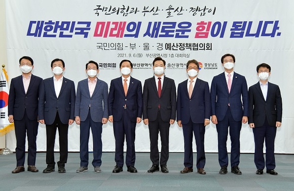 6일 오후 부산시청에서 부산시, 경남도, 울산시 순으로 개별 진행된 '국민의힘-부울경 예산정책협의회'에는 국민의힘 김기현 원내대표와 김도읍 정책위의장, 이만희 예산결산특별위원회 간사, 이달곤 경남도당 위원장, 강민국 원내대변인 등 지도부가 참석했으며, 도에서는 하병필 도지사 권한대행과 박종원 경제부지사를 비롯해 현안 국비사업 설명을 위해 소관 실국장들이 참석했다.