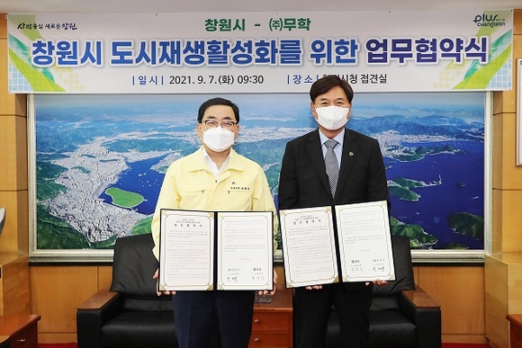 경남 창원시는 7일 오전 시청 접견실에서 ㈜무학과 창원시 도시재생 활성화 추진을 위해 업무협약을 체결했다.