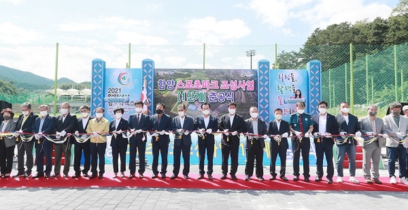 공공생활체육 인프라 확충을 통해 군민들의 건강한 여가활동 향유에 기여할 함양스포츠파크 조성사업(1단계)이 준공됐다.
