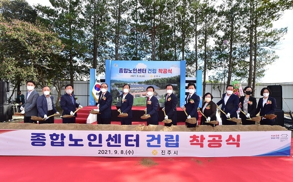경남 진주시는 지난 8일 문산읍 삼곡리에서 조규일 시장을 비롯한 도·시의원, 기관 및 사회단체장, 주민 등 30여 명이 참석한 가운데 종합노인센터 건립을 위한 착공식을 가졌다.
