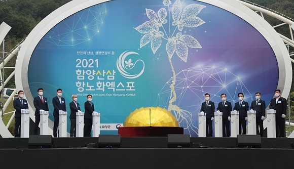 산삼의 우수성을 널리 알리고 산삼항노화산업의 저변 확대를 위한 '2021 함양산삼항노화엑스포'가 개막했다.