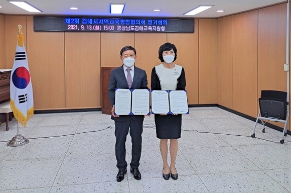 김해교육지원청과 김해시는 13일 교육지원청 대회의실에서 교육·학예에 관한 사무 등의 정책연계 및 상호 협력 강화를 위해 2021년 김해시지역교육행정협의회 정기회의를 개최했다.