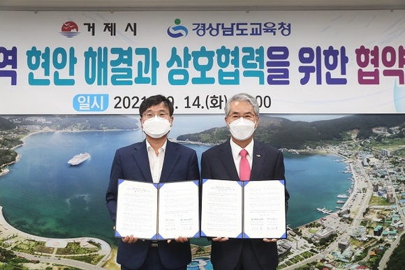경남도교육청은 지난 14일 거제시장실에서 거제시와 지역 교육현안 해결을 위해 상호 협력키로 하는 업무협약(MOU)을 체결했다.