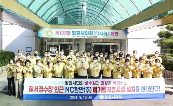 창원시의회는 15일 제107회 임시회 3차 본회의에서 '칠서정수장 인근 폐기물처분시설 설치 반대 결의문'을 채택했다.