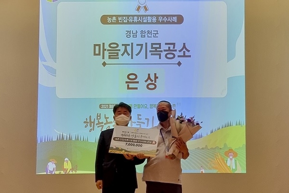 금년 콘테스트는 전국 1900여개 마을이 참여해 시·도 예선과 현장평가를 거쳐 최종 25개팀이 본선에 진출했으며, 합천군은 콘테스트 참여를 위해 지난 5월부터 평가 및 발표자료 준비 등 마을지기목공소 회원들과 함께 노력했고 경남도 농업정책과, 한국농어촌공사 경남본부 컨설팅 등의 지원에 힘입어 도대표로서 출전한 농촌 빈집·유휴시설 활용 분야에서 은상을 차지하는 쾌거를 거뒀다.