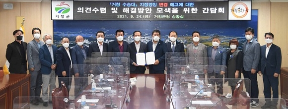 경남 거창군은 24일 군청 상황실에서 군수, 군의회 의장, 도의회 의원, 기관·단체장 등 14명이 참석한 가운데 '거창 수승대 명칭변경 예고 관련 기관·단체 의견수렴 간담회'를 가졌다.