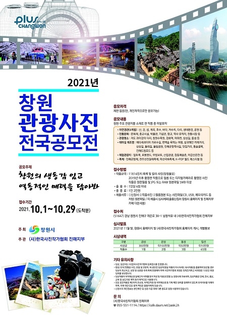 출품 자격은 '창원의 생동감 있고 역동적인 매력을 담아봐'라는 주제에 맞춰 창원의 자연경관, 관광명소, 전통문화, 테마길, 체험관광 등을 소재로 2019년 이후 촬영한 작품 중 미발표작이어야 한다.